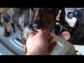 Description: Brisket was surrendered to rescue after a brief stent as a breeder stud muffin! Brisket is a big hunky standard silver dapple male. He is sweet and a bit shy at first and not 100 percent socialized at the moment. Brisket is in a great foster home with kids and other dachshunds, learning the ropes on how to be a perfect boy! Stay tuned for more on Brisket and his handsome dapple coat and his beautiful blue eye!